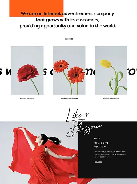 顧客のビジネスにおいて、結果を出すためであっても、倫理的ではない施策などは提案しない。強い倫理観と道徳意識を持って主体的に行動して結果を残してきたからこそ、自分の行いに胸を張れる。組織や仲間、自分自身に自信を持ち、誇らしくいてほしい。ビジュアルでは、成長し、咲き誇る花のように 自分の信念に胸を張るという意味を込めた「咲き誇る」をデザインコンセプトに、bloomingを表現しました。